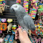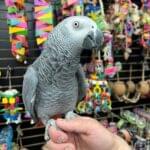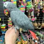 Say hi to “ZEEK” African Grey Congo adult male available he is tame and will step up, with any adult bird it will take some time for them to get familiar with their new owners